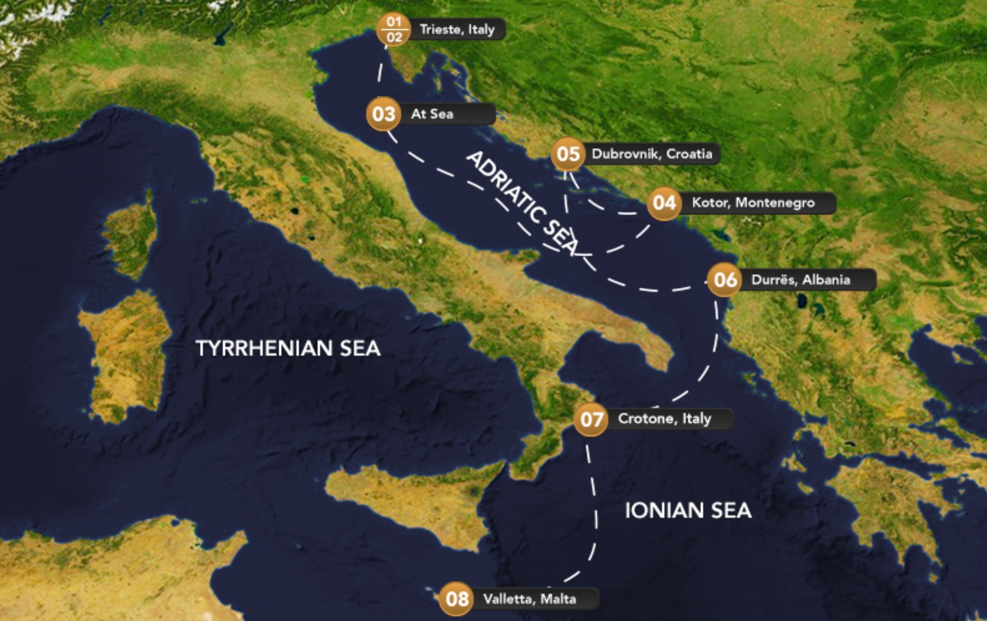 Sailing through the Adriatic and Ionian seas, couples explore: